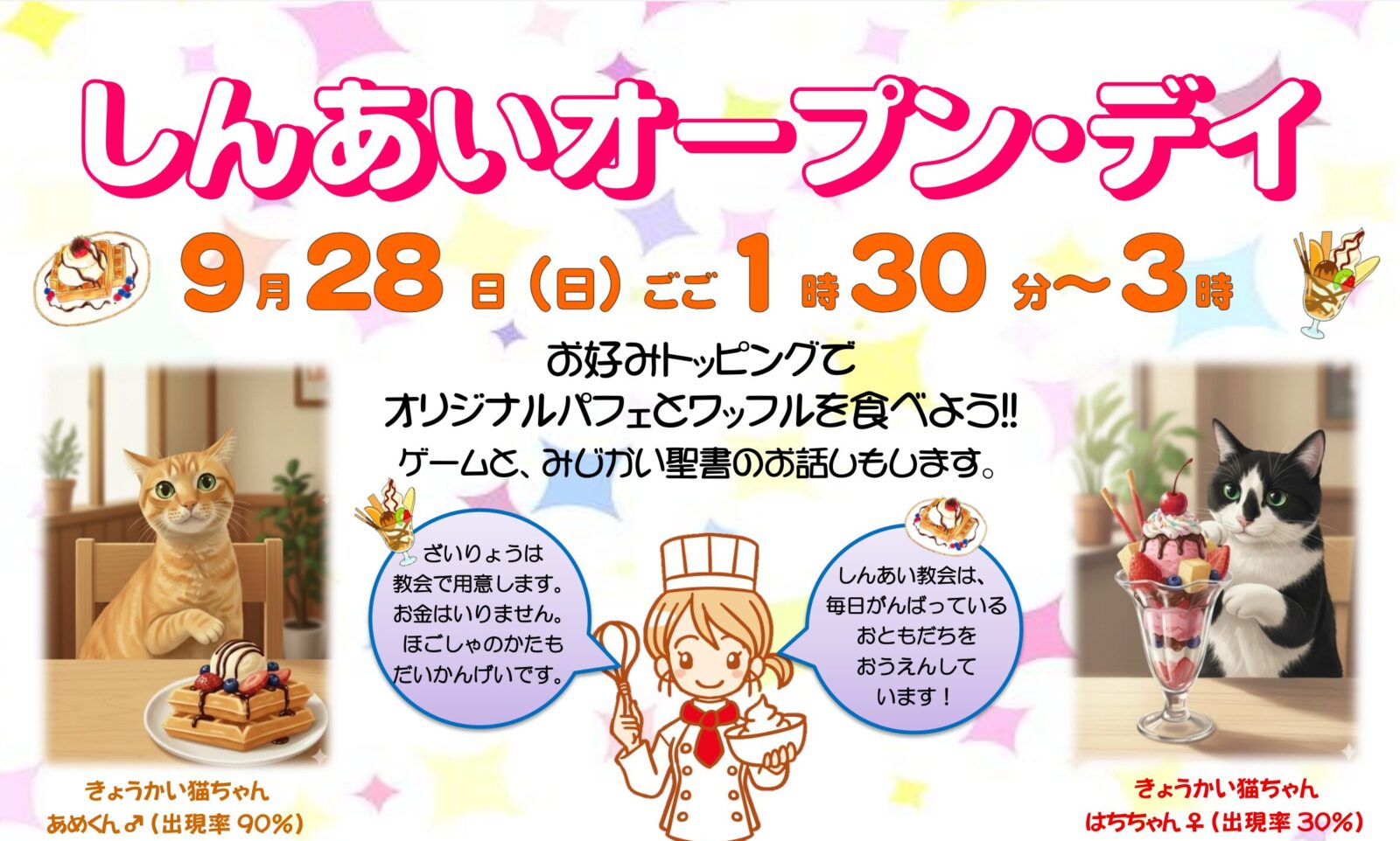 | キッズ & ユース礼拝 | 毎週日曜日 主日礼拝後 または昼食後 | 0歳児から18歳までを対象としたキッズ・ユース向けの礼拝式です。 メッセージは、一般のキッズ・ユースのグループと小学生低学年までのグループに分けて行われます。 |